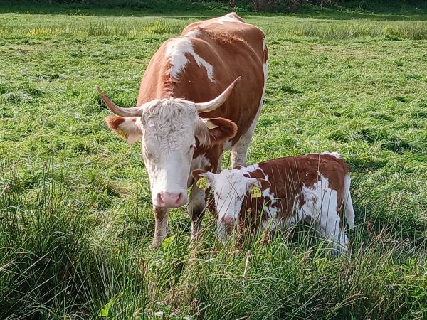 Gemeinsam mit Kindern und Jugendlichen bewirtschaften wir ca. 40 ha Äcker, Weiden und Wiesen und kümmern uns um die Mutterkuhherde, das Jungvieh, Weideochsen, Flaschenlämmer, Pferde und Hühner.