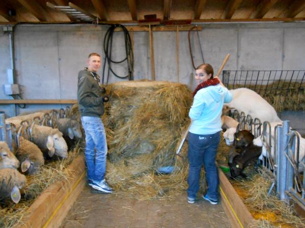 Betreuung der städtischen Schaf- und Ziegenherden zur Beweidung kommunaler Flächen im Naturschutzgebiet: Füttern der Tiere und Stecken der Koppeln