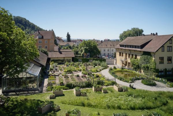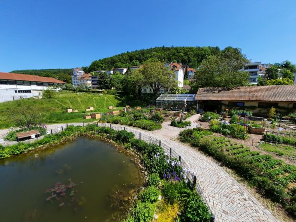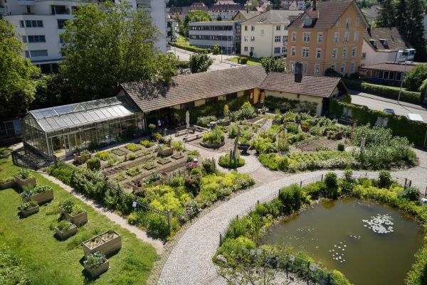 Mitten in Waldshut liegt der Stoll-Garten mit einer Wildblumenwiese, einem Wassergarten, Rosen- und Staudenrabatten sowie einem Beeren- und Schaugarten.